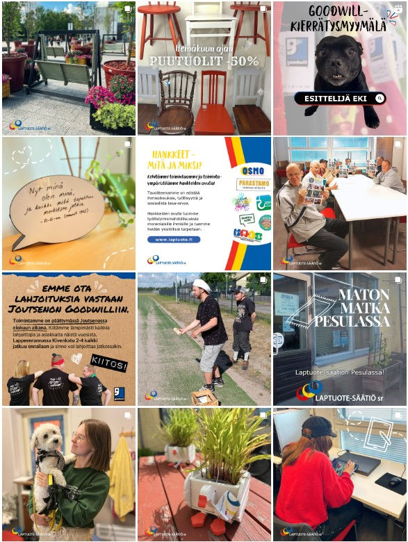My duties included overall marketing and communication for Laptuote, with a particular focus on planning and executing social media content. I created content for all Laptuote's social media channels: Instagram, Facebook, TikTok, and YouTube. I was responsible for Laptuote's own channels, as well as the Instagram, Facebook, and TikTok accounts of Goodwill Lappeenranta and Goodwill Joutseno (which closed in August 2024). I also managed the social media accounts for the SOTE workshop's Instagram and Facebook pages. I aimed to develop and create brand-aligned content for each platform. For Laptuote, I focused on creating casual, professional, and fresh content that informed clearly and engagingly about the foundation's services and activities. For the Goodwill stores, I ensured the content aligned with Goodwill Finland’s brand. When creating content for the Goodwill stores, I made sure to present their ideology and services in a relevant and audience-appropriate way. For the SOTE workshop’s social media, I focused on creating warm, human-centered, and relaxed content. The SOTE workshop offers work activities for people with disabilities, aiming to support labor market inclusion and enhance well-being and life management. When creating content for the SOTE workshop, I particularly focused on highlighting the joyful and optimistic daily life of the clients, known as "kettupajalaisten," and their work activities.